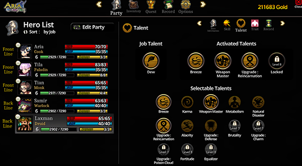 Oyun esneklik sunuyor ve oyuncuların oynarken önlerinde ne olduğunu tahmin etmeleri zor olacak.Oyunun temel yapısı, bir düzineden fazla türde beceriye sahip olan ve saldırıları zindanlara yuvarlayan kahramanlarla Aria partileri oluşturması, ancak kendisine 14 farklı meslek seçmesine ve hatta farklı beceriler yapmasına izin veren oldukça özgür bir sisteme sahip olmasıdır. kendi kahramanlarını yaratmak için ağaçlar.