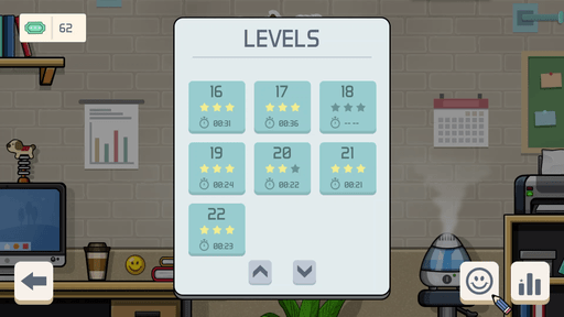 Su tehlikeleri ve düşen nesnelerle dolu engelli parkurda dolaşırken, bilgisayar ekranlarında ve duvar projeksiyonlarında gösterilen akıllı ipuçlarına dikkat edin. Hala kendinizi herhangi bir seviyede zorlanırken bulursanız, sadece bazı bonus fişleri kullanın ve seviye için bir video kılavuzunun kilidini açın.