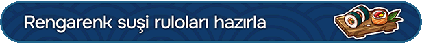 Özünde harmoni olan bu sanat eserlerini yaratmakta ustalaş. Aklına yeni bir fikir gelirse harekete geç! Malzemeleri birleştir ve yeni şeyler dene. Kendi tasarladığın suşi setlerini servis et ve bunları müşterilerinin beğenip beğenmediğine bak. Her zaman onların damak tatlarına özen göster ve özel isteklere karşı hazırlıklı ol.