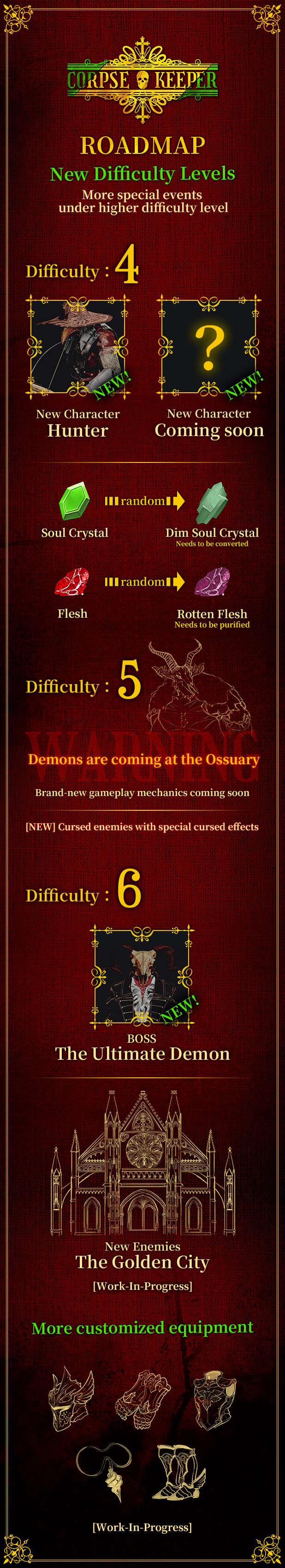 Corpse Keeper, tonlarca strateji öğesi içeren çok zorlu bir aksiyon RPG'sidir. Sınırlı bir süre içinde acımasız ve karanlık ortaçağ dünyasını keşfetmek, kaynaklar ve ekipman elde etmek, düşmanların et ve kemikleriyle yaşayan ölülerden oluşan güçlü bir ordu kurmak ve sonunda gizlenen iblisi öldürmek için üç cesetten oluşan bir mangaya liderlik etmeniz gerekecek. ruhunu avlamak için katedralin derin ucunda.