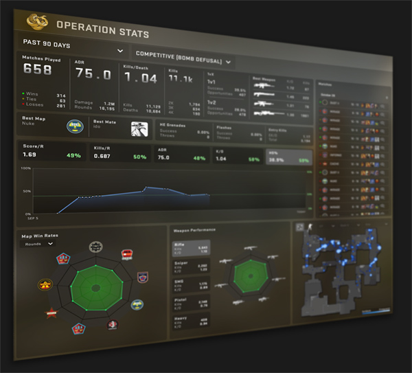 Rekabetçi yeteneklerinizi Aktif Görev harita havuzunda test edin ve operasyon istatistikleri sayfasından detaylı istatistiklerinizi görün. Operasyon biletinizle çeşitli kategorilerdeki detaylı istatistiklere erişim sağlarsınız. İstatistikleriniz otomatik olarak takip edilir ve operasyon istatistikleri sayfasından görüntülenebilir.