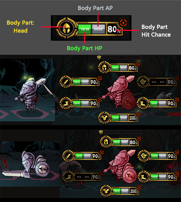 Yine de Dungeon No Dungeon'da odak, farklı vücut parçaları üzerinde verdiğiniz kararların neden olduğu farklı sonuçlara odaklanıyor. Oyunumuza daha eğlenceli olanaklar ve içerikler entegre etmeyi hedefliyoruz. Her vücut parçasının kendine özgü işlevleri vardır ve şanslardan kaçınır. Karaktere bağlı olarak, her birinin ayrıca çeşitli hasar türlerini azaltan çeşitli türlerde kendi koruyucu zırhı vardır.