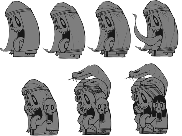 En çılgın animasyonunuzun ötesinde, net çizgiler ve tuhaf görünümlü kreasyonlar içeren kalem eskizleri, Spine animasyonuyla birlikte kare kare, elle çizilmiş animasyonla sunulur.