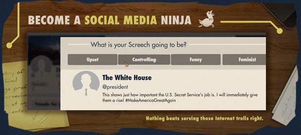 En iyi bilinen sosyal medya platformunu kullanın - Screecher . Planlarınız, tavrınız hakkında ciyak ciyak ciyak ciyak ciyak ciyak bağırın, birilerine lakaplar takın ya da seçmenleri övün. İnternette nasıl görünmek istediğiniz tamamen size kalmış - komik, empatik, gerçekçi veya belki de tuhaf? Başkan olarak, kendi imajınızı yaratma ve beğeninize göre yazılar yazma iradeniz ve gücünüz var. Ancak unutmayın - her zaman diğer kullanıcılardan yanıtlar gelecektir. Halkın tepkisine hazırlanın!