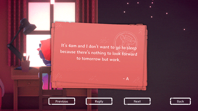 Oyuna, envanterindeki rastgele birkaç çıkartma ile başlıyorsunuz.Çıkartmalar, başkalarına yazılan mektuplara yerleştirilebilir veya alınan bir mektuba minnettar bir yanıt olarak gönderilebilir.