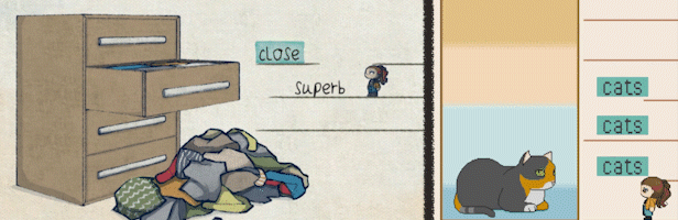 Kağıt ve bilgisayarlardan oluşan bir dünyada kelimeler önemlidir. Bu yüzden, yolunuzu engelleyen, arkadaş canlısı karakterlere yardımcı olan ve Sarah'nın arkadaşlarıyla etkileşime giren çizimleri değiştirmek için bunları kullanın.
