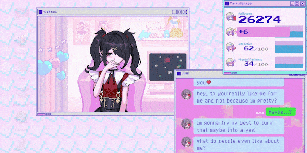 Yayıncınız çeşitli nedenlerle tuhaflaşmak ve emo olmak gibi şeyler yapacak, güvenilir P-chan'ına zarar verecek ve genellikle kafası karışacak. Maceranıza başlayın ve günümüz internetinde sevimli ama rahatsız bir kız için mutlu bir sonun gerçekten mümkün olup olmadığını kendiniz görün.