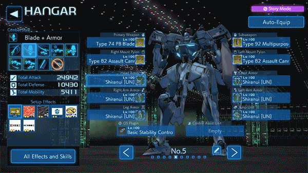Hikaye Modunda, oyuncu sadece kendi hikayesini yapmakla kalmaz, aynı zamanda kendi kişisel Taktik Yüzey Savaşçısı mecha'sını da inşa eder.