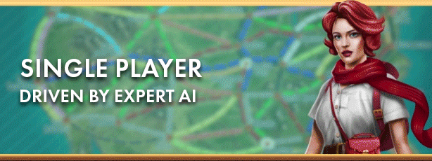 Yenilikçi uyarlanabilir bir AI sistemiyle desteklenen tek oyunculu mod, hem yeni hem de deneyimli oyuncular için bir meydan okuma sunuyor. Yeni Ticket to Ride® AI sistemi, yüzlerce usta oyuncudan öğrenilen ve milyonlarca simüle edilmiş oyun boyunca mükemmelleştirilen en iyi stratejileri kullanıyor. Tüm ihtiyaçlara uygun dinamik zorluk ayarlarıyla tek oyunculu oyunlar, oyun ilerledikçe oyuncunun tarzına ve davranışına uyum sağlayarak gerçekçi bir meydan okuma sunuyor.