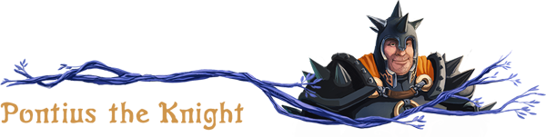 Büyük bir kalbe sahip diyarın cesur koruyucusu Pontius, istasyonundan bağımsız olarak ihtiyacı olan herkesin şampiyonudur. Pontius, Kralın kendisi tarafından şövalye ilan edildi ve bunu kanıtlamak için kırmızı bir pelerini var! O, güvenilir kalkanı ve kılıcı ile her zaman ön saflarda savaşa giren bir cephe kahramanıdır. İyilik ve Adalet tarafında tutkuyla savaşmanın yanı sıra, Pontius iyi yiyecek ve içecek için eşit bir sevgiye sahiptir ve devasa patates yetiştirirken dünyanın köşesini koruyabileceği basit bir çiftliğe bir gün yerleşmeyi hayal eder. ve balkabağı. Ve turta ye.